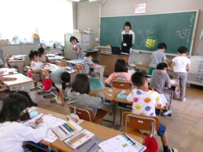 算数やひらがなの復習をしていました。プリントやドリルができたら,先生に提出しています。みんな一生懸命取り組んでいました。