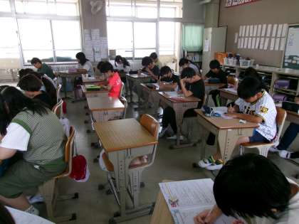 「小数のわり算」の復習をしていました。ワークの問題を一生懸命解いています。みんな集中して取り組むことができていました。