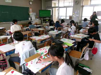野菜や果物の絵を使って人物の顔を描くという絵の制作が,いよいよ佳境に入ってきました。顔のパーツとなる野菜や果物の絵がほぼ完成に近づいてきたからです。完成が楽しみです!