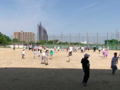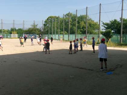 これもなかよし活動の様子です。しっぽ取りやソフトドッジボールなどいろいろな遊びで楽しんでいます。