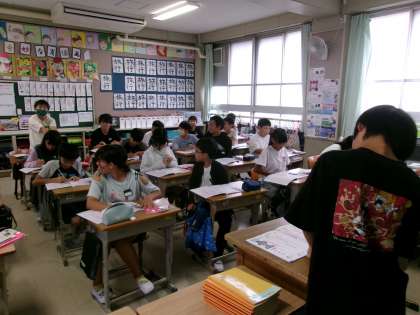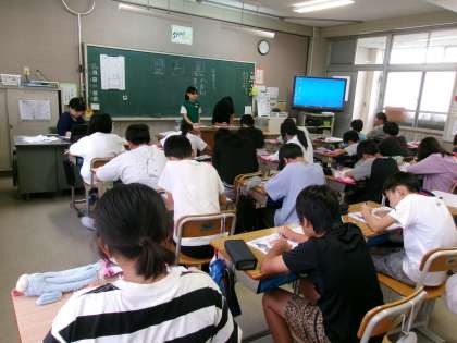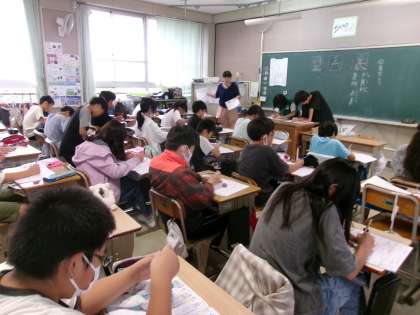 新出漢字の学習をしていました。国語担当の2人が前に出て,学習を進めていきます。