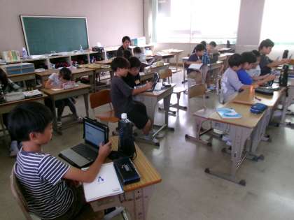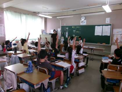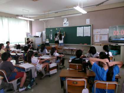 3桁×1桁のかけ算の計算の仕方を考えていました。練習問題では,前に出て黒板に計算の答えを書いています。みんなしっかり手を挙げていました。