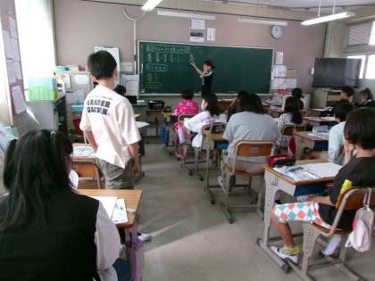 約分の仕方について学習していました。偶数と奇数の場合や1の位が0か5の場合などの約分の仕方を考え,それらを活用していろいろな分数の約分に挑戦していました。