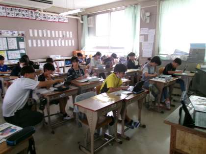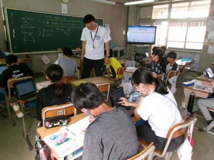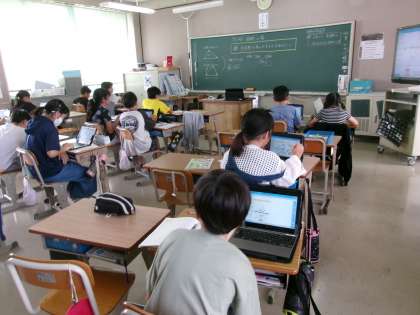 いろいろな多角形の内角の和を求めていました。対角線を入れて,三角形と四角形に分けたり三角形が3つあると考えて角度を求めたりと,いろいろな工夫をしながら求めていました。