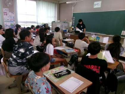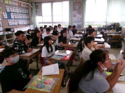 これからお面を作っていきますが,その説明を聞いているところです。具体的な作り方だけでなく,担任が実際に作ったものを紹介していたので,完成のイメージが分かり易いと思います。これから設計図を描いていきますが,ユニークなお面ができるのを楽しみにしています!