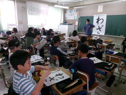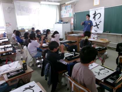 書写の授業の様子です。1組も「わざ」という字を練習していました。みんな一生懸命取り組んでいました。