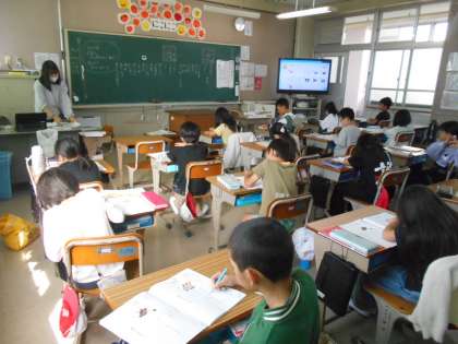 新出漢字の学習をしていました。今日は「走」と「売」です。みんな真剣に練習していました。
