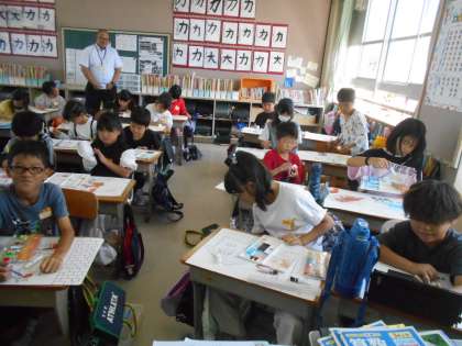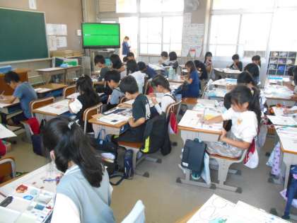自分が想像した物語の絵を描いていました。みんな集中して色を塗っているところです。