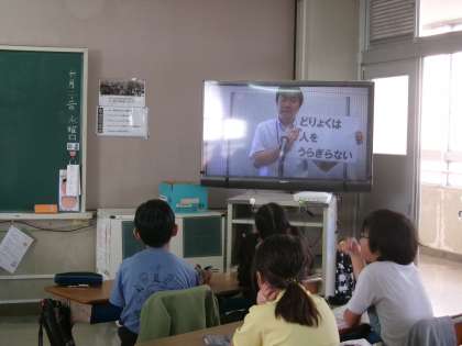 今日の全校朝礼では,校歌の練習をした後,校長先生から連運と連音についての話がありました。