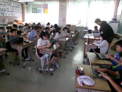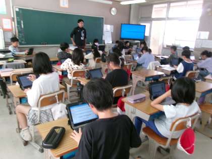 「慣用句の意味を知り,友だちに伝えよう」というめあてで学習を進めていました。タブレットや辞書で意味を調べ,それを発表ノートなどにまとめていきます。