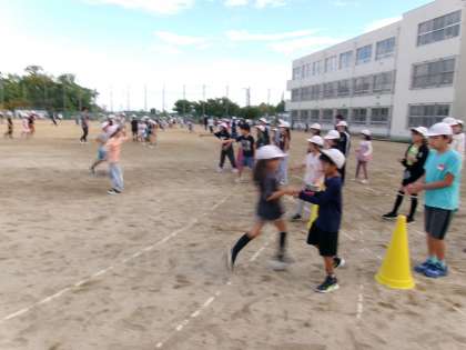 この写真もなかよし活動の様子です。縦割り班ごとにいろいろと工夫して遊んでいました。