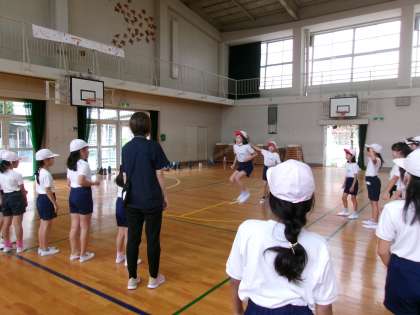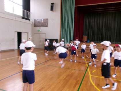 大縄跳びに挑戦していました。合計で何回跳べたかを数えながら,頑張ってたくさん跳べるように声を掛け合っていました。