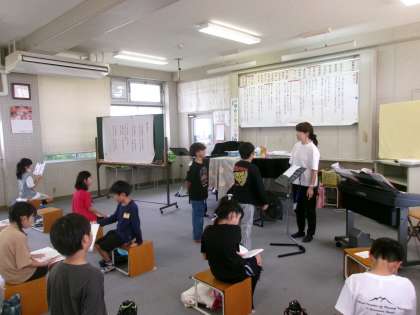 今日は,全員で歌の練習をした後,テストをしていました。2曲のうちの好きな曲を一人ずつ歌っていきます。緊張しながらも一生懸命頑張っていました。