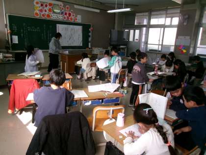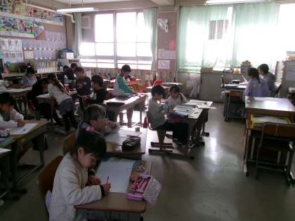 おもちゃが完成したので,「動くおもちゃの作り方」という説明文を書いているところです。そのためのポイントを全員で確認して,下書きができた子から先生にチェックしてもらいます。