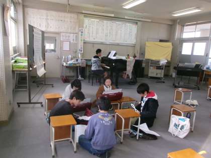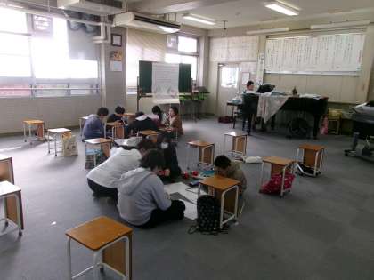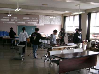 3学期の卒業コンサートの準備や練習をしていました。今日は楽器もとなりの多目的室に移動していました。本番が楽しみです♪