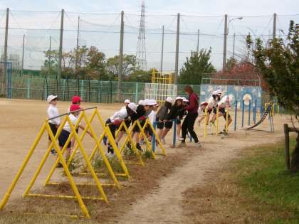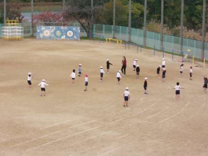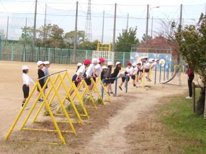 鉄棒に挑戦していました。ウォーミングアップも兼ねてなわとびを行った後,鉄棒に10秒止まっていられるかに挑戦です。