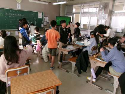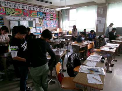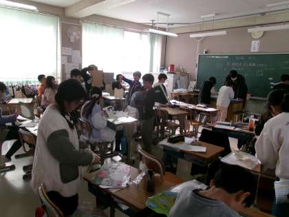 2組も伝言板を作っていました。伝言板になる白い部分を切り取り,板に貼り付ける作業をして完成です。みんな,上手に作ることができていました!