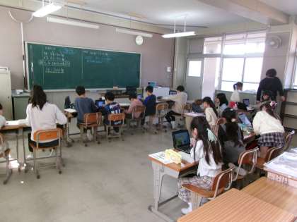 重さの単位について学習していました。「t」と「kg」の関係について確認した後,「t」で表したり「kg」で表したりする練習をしていました。
