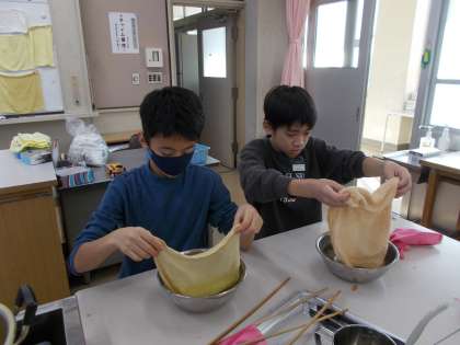 持ってきたタオルを染めて、ぞうきんを作ります。