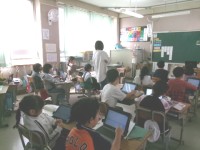 PC上で,教科書に掲載されている曲が書かれたルーレットを回して,その曲を歌っていました。みんな元気よく歌っています。曲に合わせて手遊びをする子もいました♪