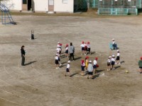 準備運動になわとびをした後,的当てゲームを行っていました。かなり上手にパスしたり...