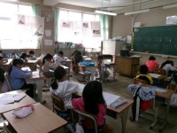 「たぬきの糸車」の学習に入っていました。まずは先生が範読して,全員が一生懸命音読...