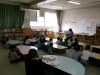 読書の時間の様子です。今日は,司書の方に絵本の読み聞かせをしてもらっていました。...