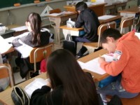 テストに取り組んでいました。みんな一生懸命考えて,丁寧な字で答えを書いていました...