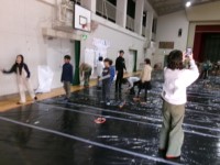 今日は学年合同の図工を行いました。堺ミーツアートの皆さんに来ていただき,黒のビニ...