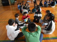 寒い日が続くので,今日は体育館で体を動かしてゲームをしました。「けんけんばじゃん...