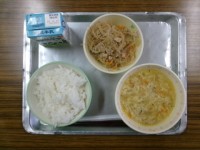 今日のメニューは,ごはん,むらくも汁,さばのごまみそ焼き,キャベツと小松菜の炒め...