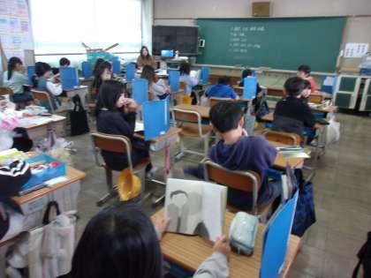 1、2組は国語のテストを行っていました。できた人は読書をして静かに待っていました。