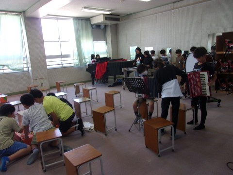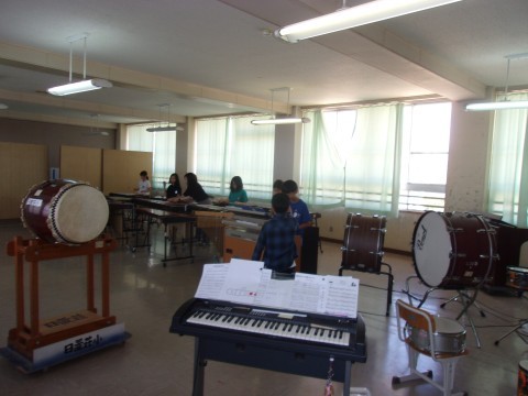 2組は音楽で、『アフリカンシンフォニー』の合奏の練習に取り組んでいました。各パートに分かれて熱心に練習していました。