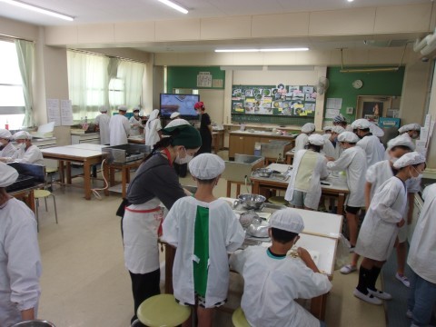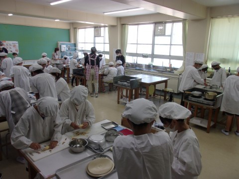 3組は家庭科で、ほうれん草とじゃがいもをゆでて調理しました。じゃがいもの皮をむいたり切ったりと慎重に調理していきました。ほうれん草もうまく湯がけたようです。