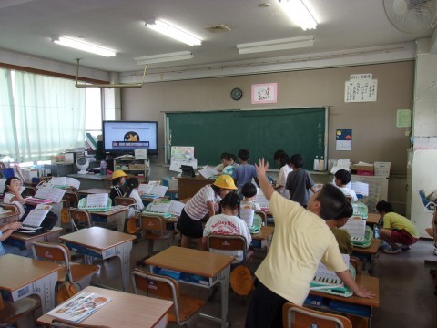 2組は生活で、町たんけんの発表の準備に取り組んでいました。クイズ形式にするなどして、伝えたいことがわかりやすく伝わるような工夫をしていました。