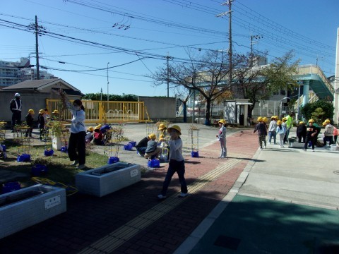 1組は生活で、アサガオの植木鉢からツルと土に分ける作業に取り組んでいました。アサガオの観察から気づいたことをもとに、2年生で野菜作りと比較するのも楽しみですね。