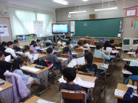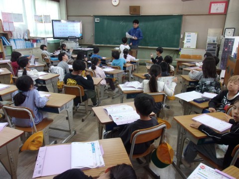 2組は国語で、漢字の学習をしていました。まずは自分たちでドリルに書き込んでいき、その後先生と一緒に答え合わせをしていきました。数の数字をしっかりと書いていきました。