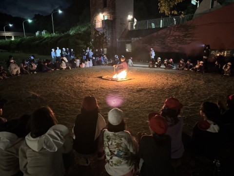 みんなで火を囲みながらダンスを踊ったり、ゲームをして楽しんでいます。