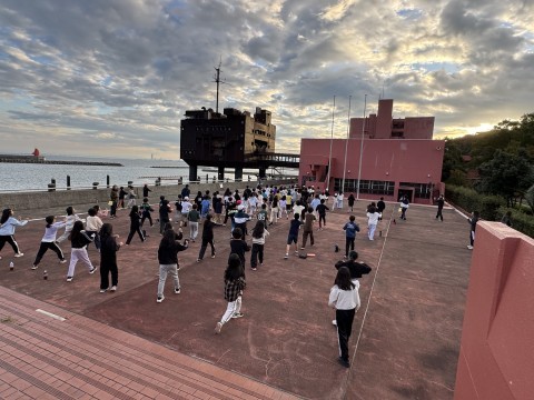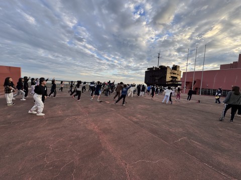 朝の集いの様子です。新・堺っ子体操をし、今日のスケジュールを確認しました。