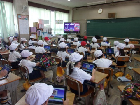 3組はカフートを使ってクイズ形式で言葉の学習をしていました。自転車の写真を見て正しくひらがなで表記しているものを選ぶなど何問も答えていきました。