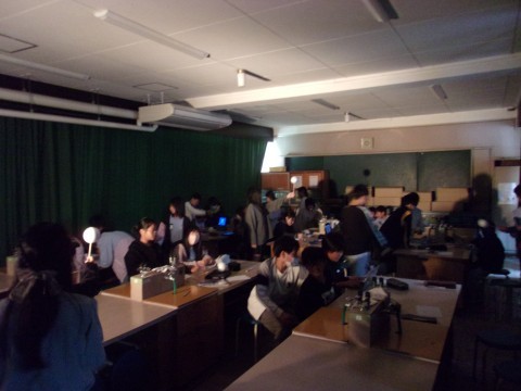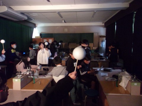 2組は理科で、光の当たり方と月の形について学習していました。光の当たる方向が変わることで月の形が変わることに驚いていました。
