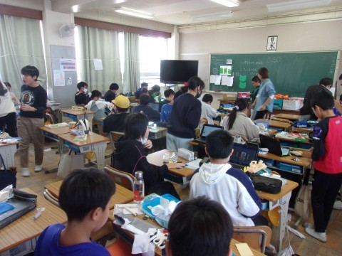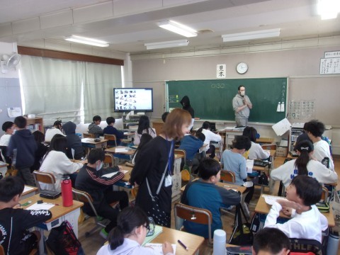 2組は外国語で、Make a Monster!の学習をしていました。示された例を見ながら各自でモンスターを考えていきました。