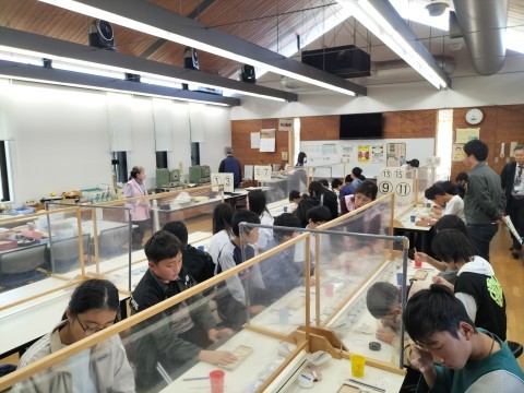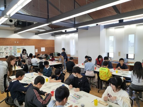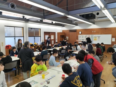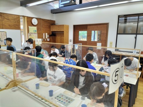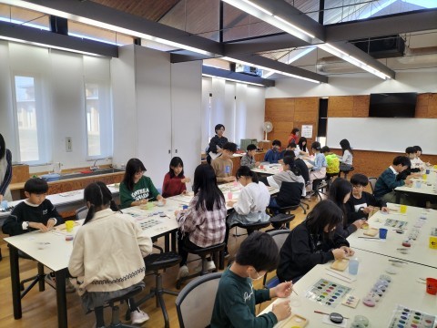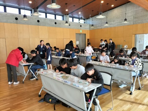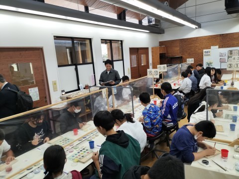 あらかじめ学校で考えてきた下絵をもとに、台座に釉薬を乗せていきます。なかなか思い通りにいかないところもあったようですが、粘り強く取り組みました。焼き上がって届けられるのが楽しみですね。