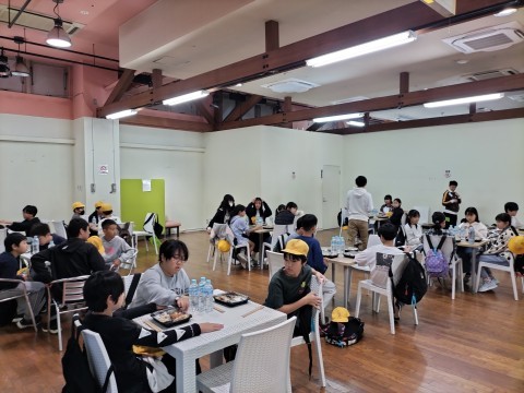 朝ごはんがいつもより早いこともあり、お腹が空いていたようです。みんな黙々と食べていました。
