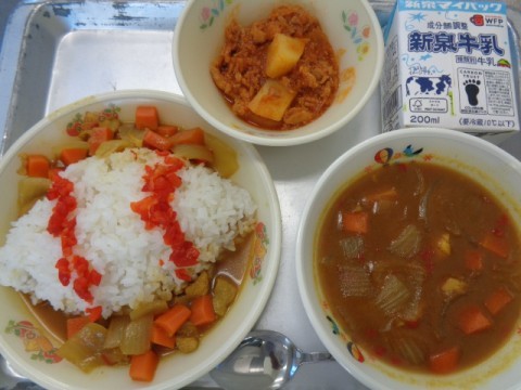 今日は豚肉・たまねぎ・じゃがいも・パイナップルをいっしょに煮込んで作りました。