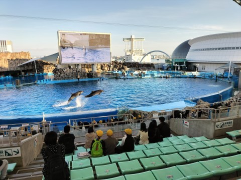 イルカのパフォーマンスには大きな歓声と拍手が起こりました。
