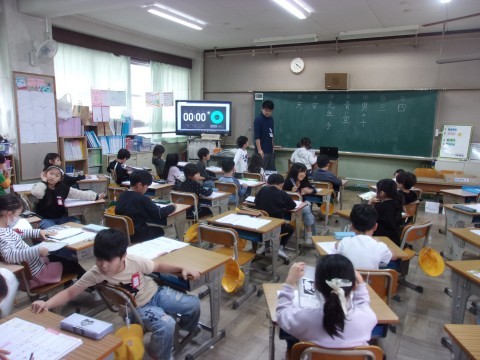 3君は国語で、漢字の学習をしていました。すでにたくさんの漢字を学習しています。ノートに書きこむことができた人から先生に見せに行きました。