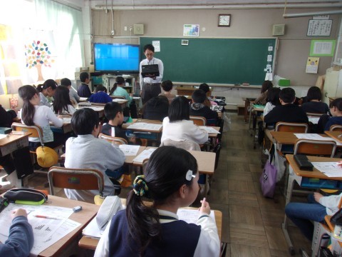 1組は国語で、『未来につなぐ工芸品』を読んで「初め」「中」「終わり」に分け、筆者の考えをとらえていきました。