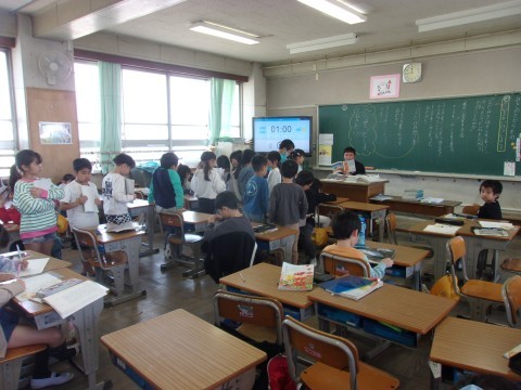 2組は国語で、『みきのたからもの』の学習をしていました。今日の授業のふりかえりを書いた人から、順番に先生に見てもらっていました。
