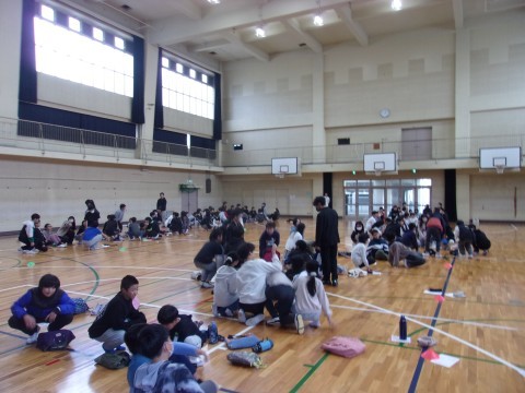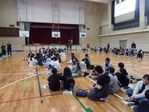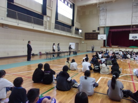 日置荘中学校で、日置荘西小学校の6年生と一緒に『にんげん学習交流会』を行いました。